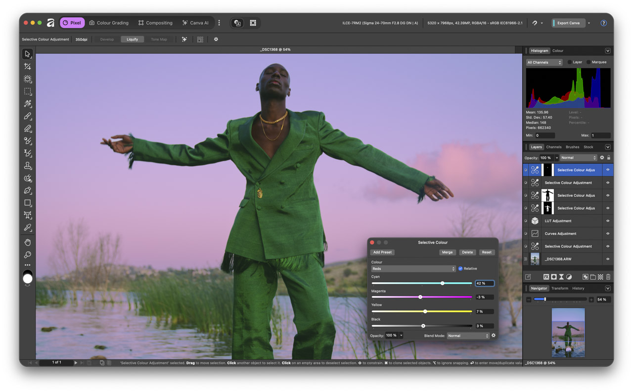 The new Affinity provides a full set of professional tools within a single application, integrating photo editing with graphic design and page layout – and free to use.Edits are non-destructive by default, allowing for iterative workflows without permanently altering source images. Affinity supports real-time rendering, so changes to images, including filters and layer effects, are previewed instantly, even on high-resolution files. Affinity also includes standard professional features such as RAW processing, layer-based editing, blend modes, masking tools, and compatibility with common file formats, enabling easy integration into existing photography workflows. The single platform allows seamless hand-off of images for use in design or documents. Users who wish to do so can also access Canva’s powerful AI tools within Affinity.
